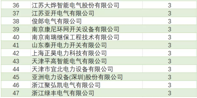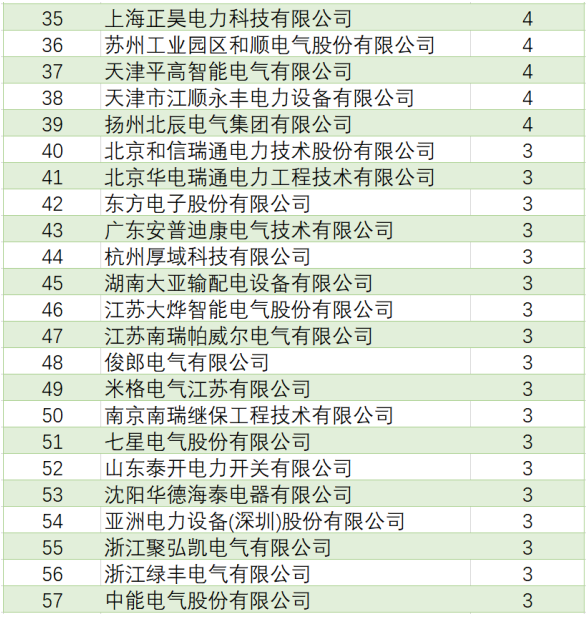 表4國網(wǎng)環(huán)網(wǎng)箱產(chǎn)品中標(biāo)企業(yè)中標(biāo)項(xiàng)目單位數(shù)(中標(biāo)項(xiàng)目單位數(shù)超過3個部分)