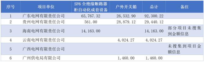2020年度,南網(wǎng)范圍共有6個省級電力公司有安排戶外開關(guān)箱產(chǎn)品招標(biāo),通過各種招標(biāo)方式安排了約8.0億元SF6全絕緣斷路器柜自動化成套設(shè)備需求和約6.1億元戶外開關(guān)箱需求。