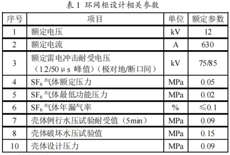 環(huán)網(wǎng)柜殼體外形不同有箱式和筒式之分。由于箱式構造有利于完成進出線.配電計劃的實施,但是箱式在接受壓力的局限性,使箱體不可以接受太高的壓力。下面引見一種環(huán)網(wǎng)柜氣箱的規(guī)劃方法。與氣箱規(guī)劃有關的環(huán)網(wǎng)柜額外參數(shù)見表1。
